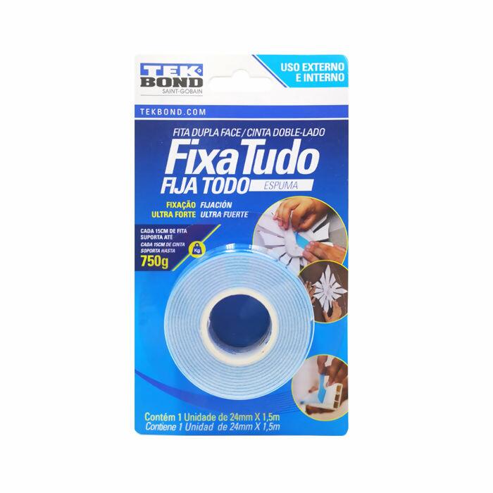 Descrição Fita fixa tudo - Tekbond - 24mm x 1,5m - Dupla face - Com espuma - Azul - 045861
