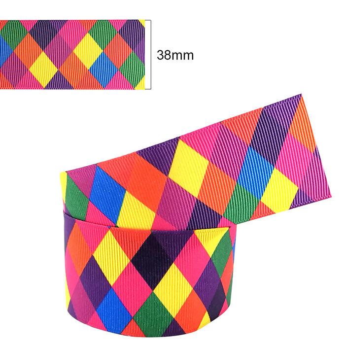 Descrição Fita Gorgurão - 38mm x 10m - Losangos Coloridos 025 - EGL009TR