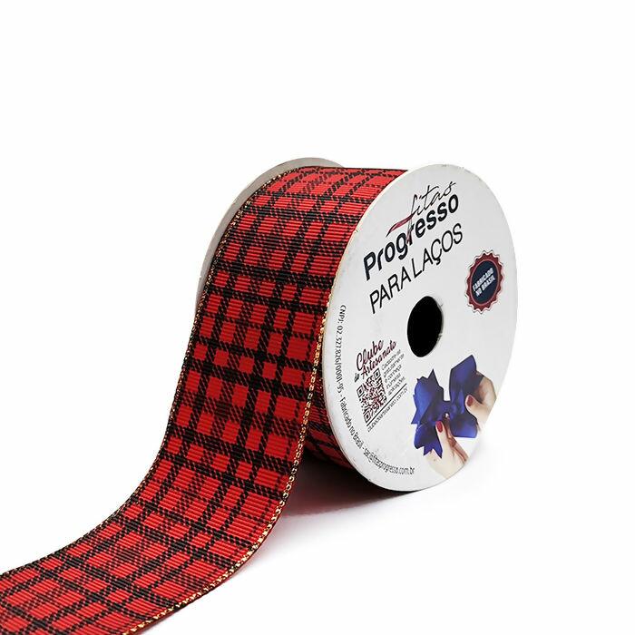 Descrição Fita Gorgurão - 38mm x 10m - Xadrez Natalino 001 - EGLD009TR