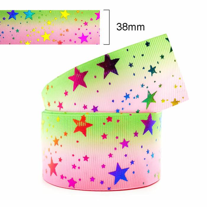 Descrição Fita gorgurão - Estrelas - 38mm x 10m - Degradê - Rosa/Verde - RO.150027 - 044486