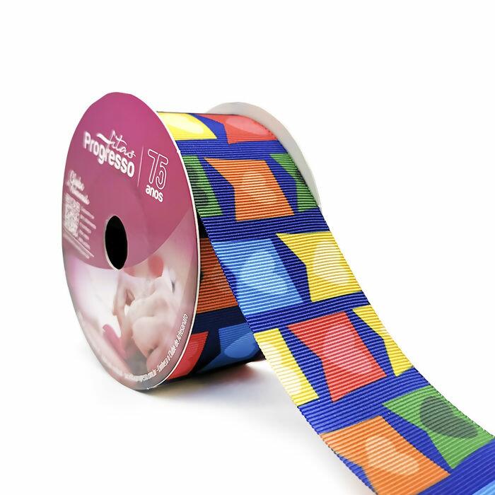 Descrição Fita Gorgurão 38mm x 10m Bandeiras Fundo Azul 348 EGP009TR