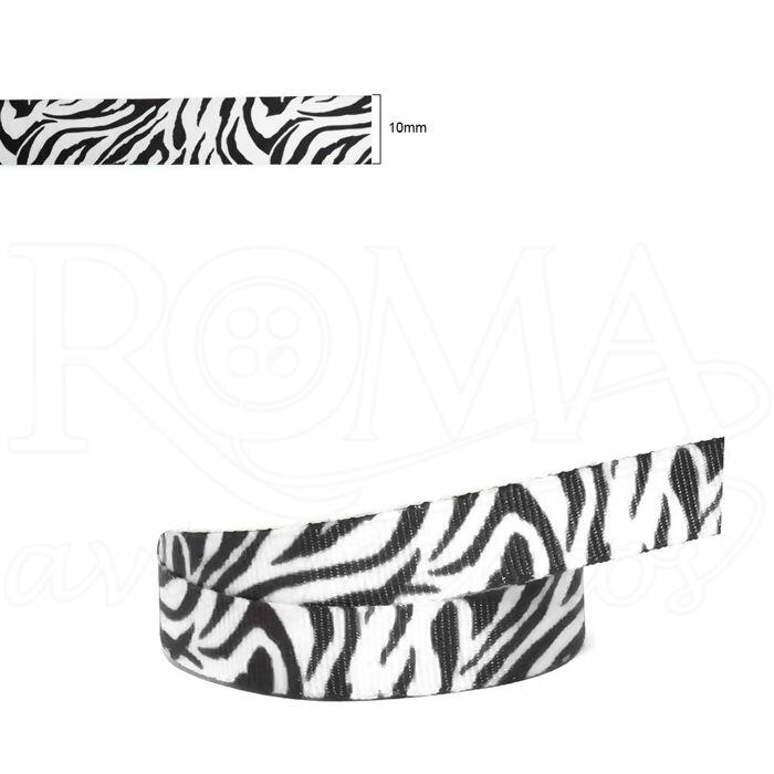 Fita Gorgurão Animal Print Zebra Gitex - 10mm x 10mt - Branco 201/Preto - 4050/2
