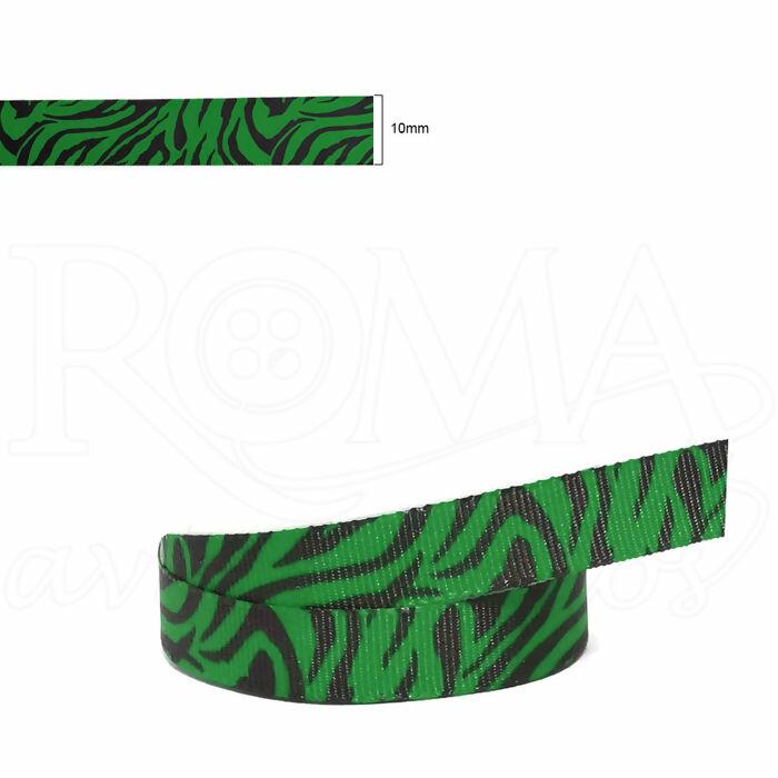 Fita Gorgurão Animal Print Zebra Gitex - 10mm x 10mt - Verde 202/Preto - 4050/2