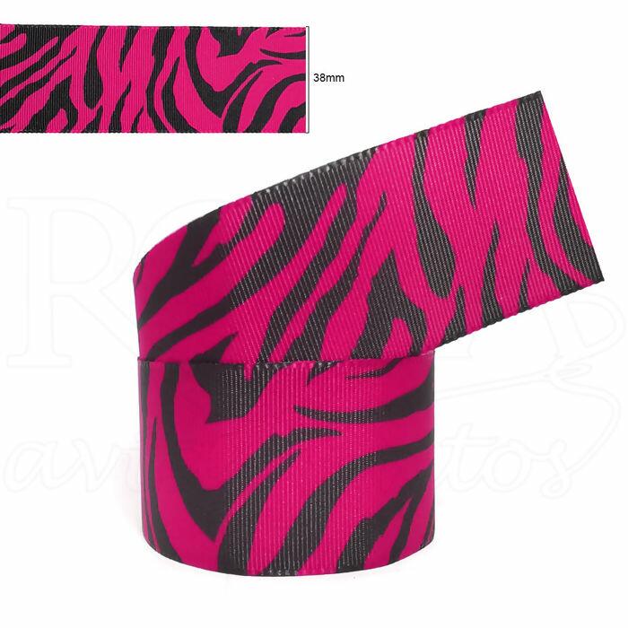 Fita Gorgurão Animal Print Zebra Gitex - 38mm x 10mt - Pink 203/Preto - 4050/9