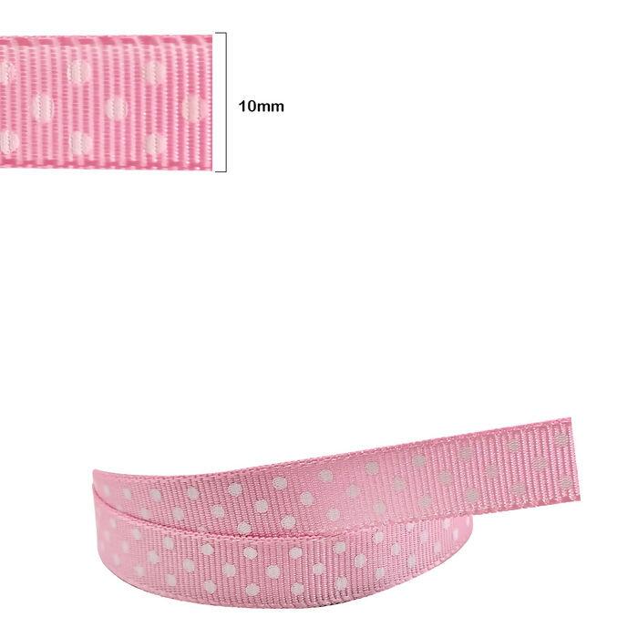 Fita gorgurão bolinha - 10mm x 10m - Rosa/ Branco 17 - 1433/10