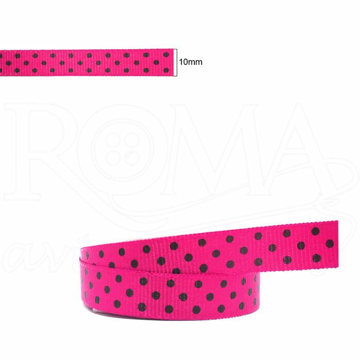 Descrição Fita Gorgurão Bolinhas Poa Sinimbu - 10mm x 10mt - Pink/Preto 23 - 1433/10