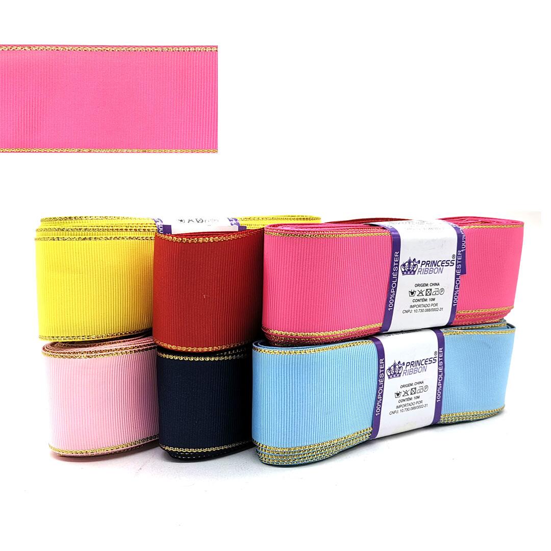 Fita Gorgurão com Borda Dourada - Princess - 38mm x 10m - RO.152444