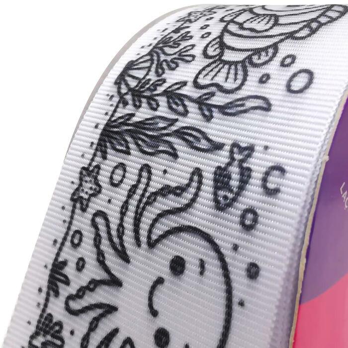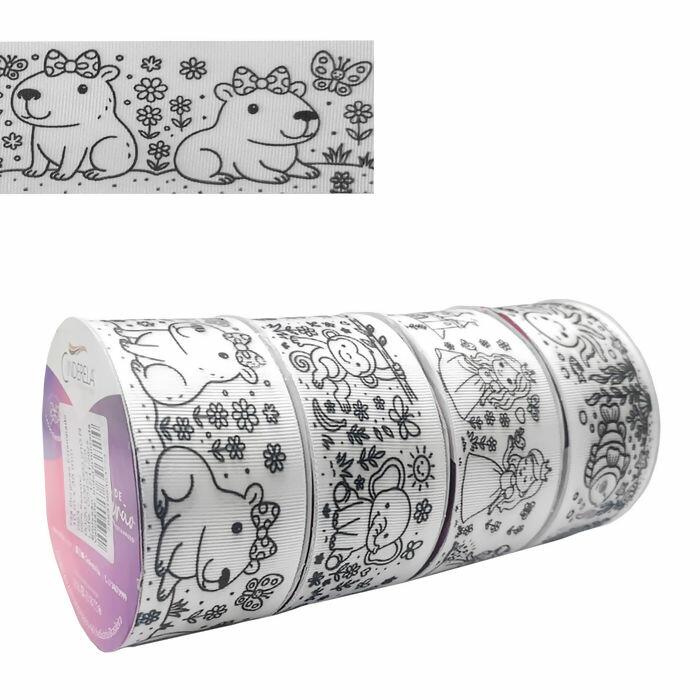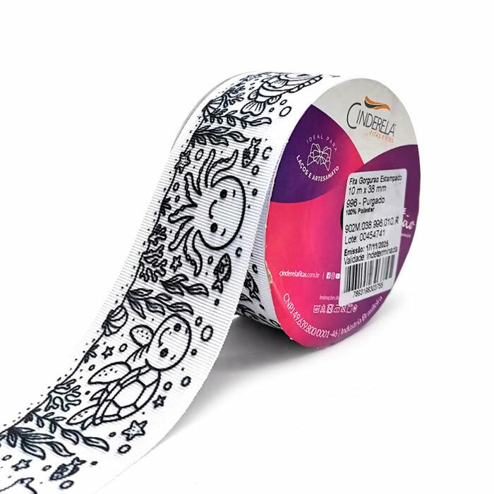 A fita gorgurão para colorir 38mm é perfeita para quem busca criatividade, personalização e acabamento profissional. Produzida em poliéster de alta qualidade, possui estampa em traço preto sobre fundo branco, ideal para colorir com canetinhas, marcadores permanentes, tintas para tecido ou hidrográficas.