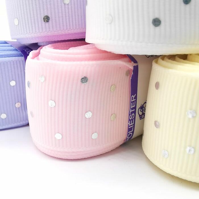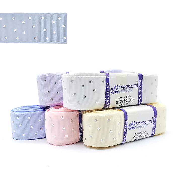 Fita Gorgurão Poa Prata Princess - 25mm X 9m - RO.151620