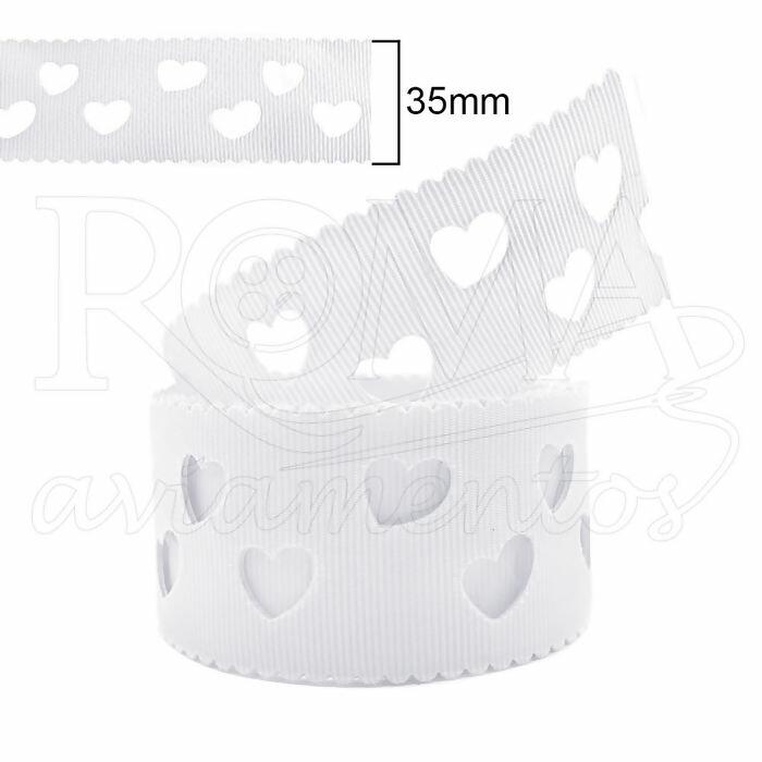 Fita Gorgurão Vazada Coração - 35mm x 10y - Branco 067 - RO.151196