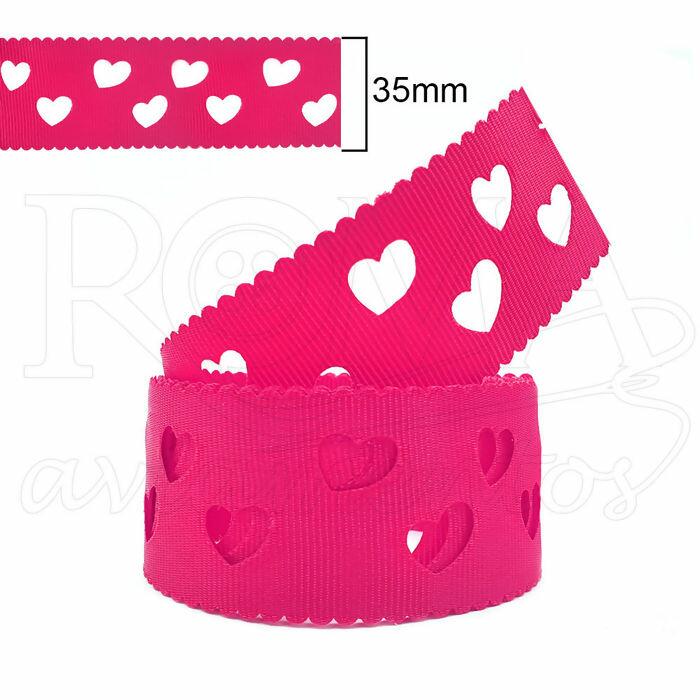 Fita Gorgurão Vazada Coração - 35mm x 10y - Pink 195 - RO.151196