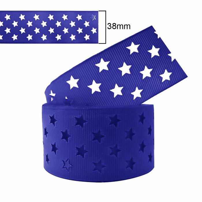 Fita Gorgurão Vazada Estrelas - 38mm x 10y - Marinho 013 - RO.151207