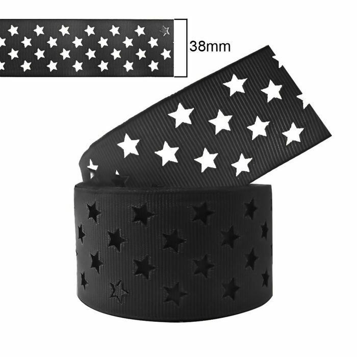 Fita Gorgurão Vazada Estrelas - 38mm x 10y - Preto 044 - RO.151207