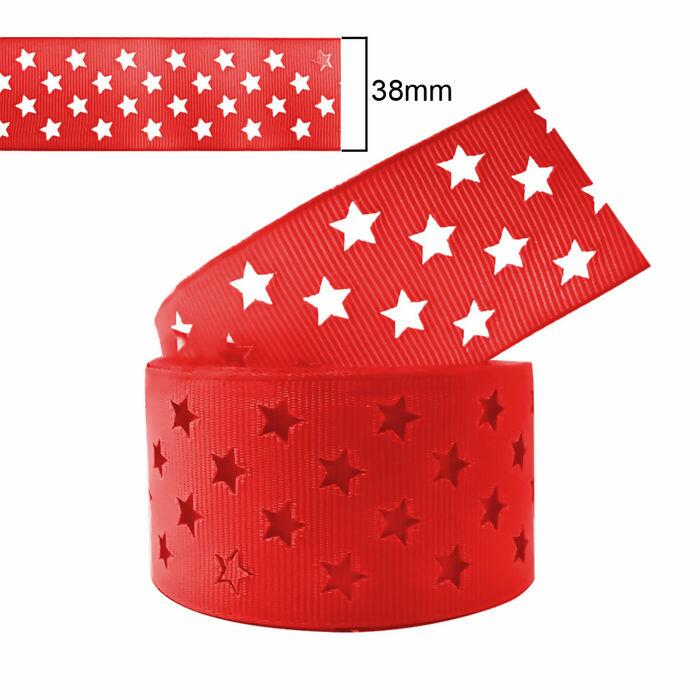 Fita Gorgurão Vazada Estrelas - 38mm x 10y - Vermelho 035 - RO.151207