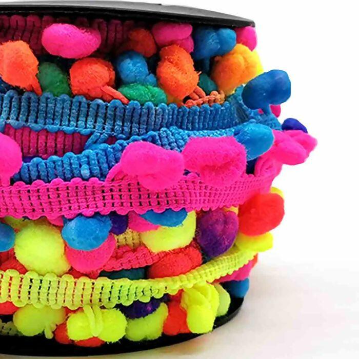 Aqui na Roma Aviamentos você encontra passamanaria pompom em diversas cores para confecção de panos de mesa, panos de prato, acabamentos em cortinas, produtos infantis como tiaras e laços, mantas e muito mais. Nossa passamanaria é super macia e maleável.
