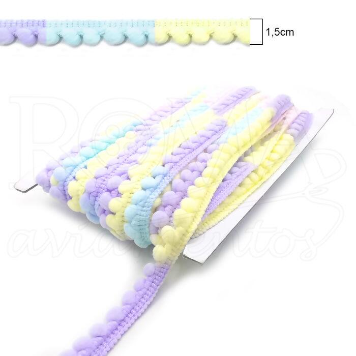 Fita Grelot Pompom - 3cm x 13mts - Multicor Claro - RO.151046