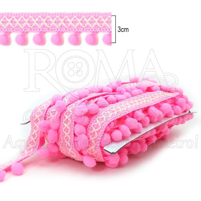 Descrição Fita Grelot Pompom - 3cm x 13mts - Rosa 080 - RO.151045