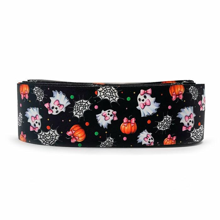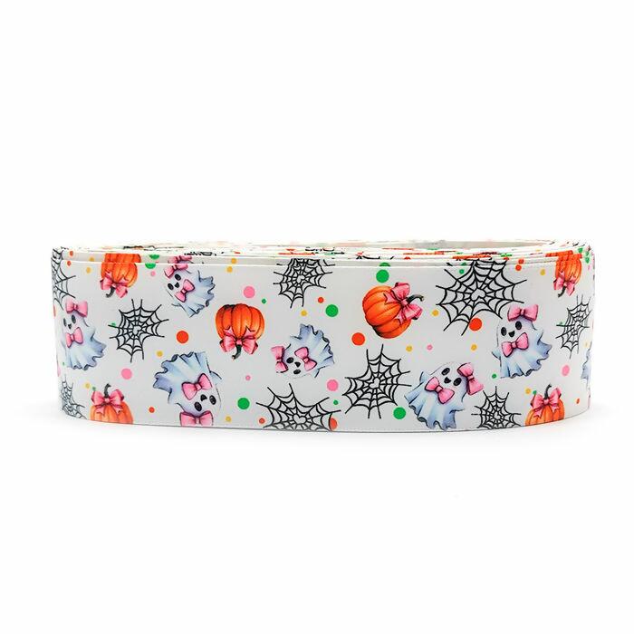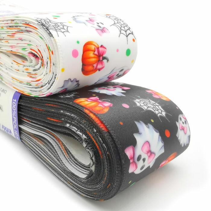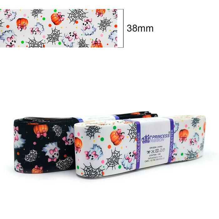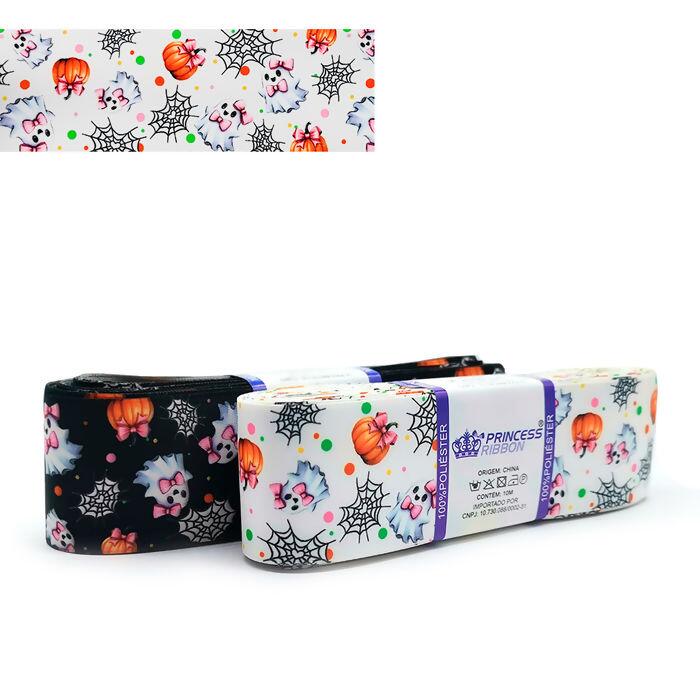 A Fita Halloween Princess é perfeita para quem quer entrar no clima do Dia das Bruxas de forma leve, divertida e criativa! Com estampa de fantasminhas com lacinho rosa, abóboras charmosas e teias de aranha, essa fita encanta tanto no fundo branco quanto no preto. Uma opção super versátil para quem trabalha com laços, tiaras e decoração temática.