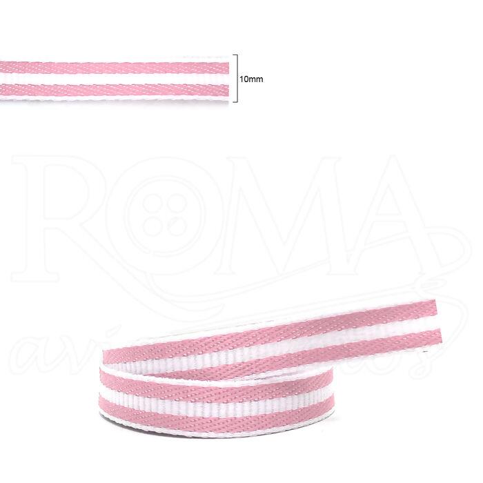 Fita Jeans Listrada Decorativa Sinimbu - 10mm x 10mt - Rosa BB/Branco - 1877/10