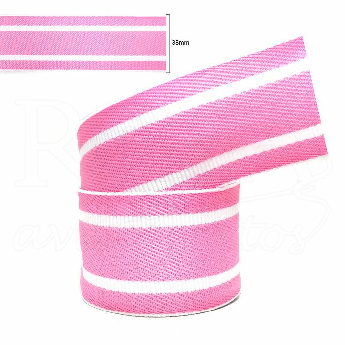 Fita Jeans Listrada Decorativa Sinimbu - 38mm x 10mt - Rosa/Branco - 1877/38