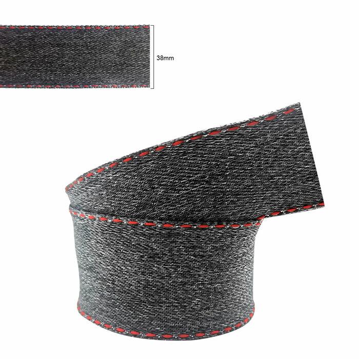 Descrição Fita Jeans Pespontada - 38mm x 10m - Mesclado/ Vermelho 209 - JMP009