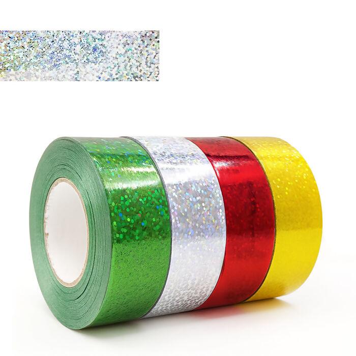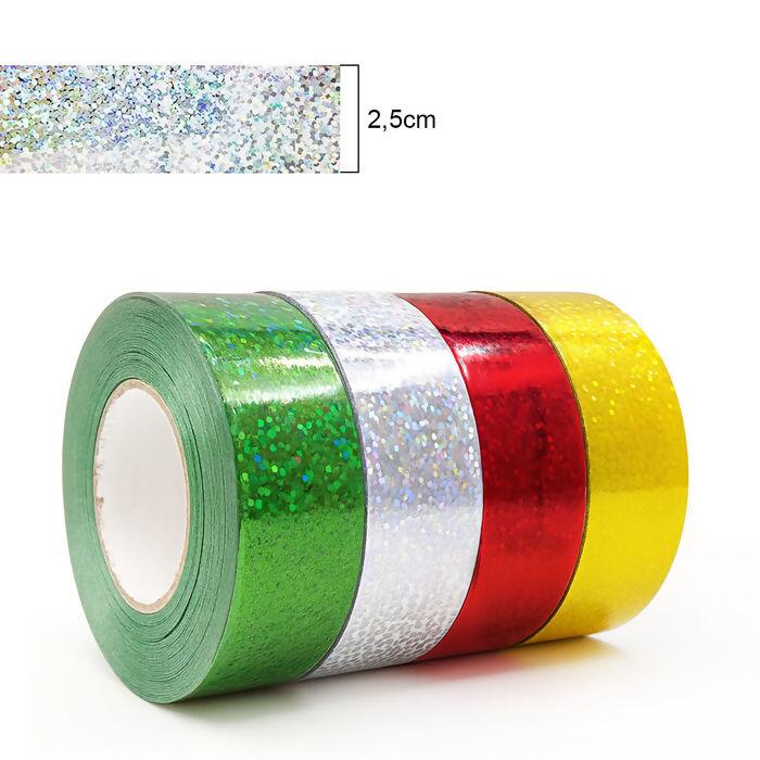 A fita metaloide glitter é perfeita para dar brilho e destaque em seus trabalhos artesanais e decorações. Disponível nas cores vermelho, verde, dourado e prata, ela possui acabamento cintilante que reflete a luz e valoriza qualquer criação.