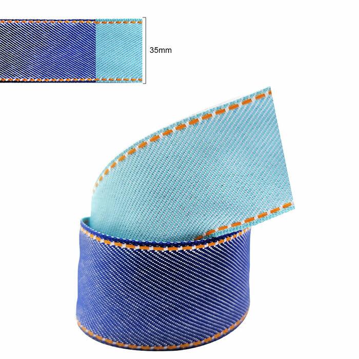 Aqui na Roma Aviamentos você encontra Fita Pespontada Jeans Indigo e Azul Neon 067, ideal para confeccionar laços, encapar presilhas e tiaras, embrulhos, acessórios diversos e todo tipo de artesanatos. Macia e delicada possui cores vibrantes e também alta resistência.