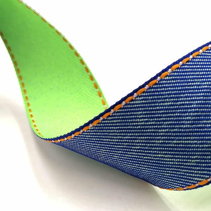 Aqui na Roma Aviamentos você encontra Fita Pespontada Jeans Indigo e Verde Neon 091, ideal para confeccionar laços, encapar presilhas e tiaras, embrulhos, acessórios diversos e todo tipo de artesanatos. Macia e delicada possui cores vibrantes e também alta resistência.