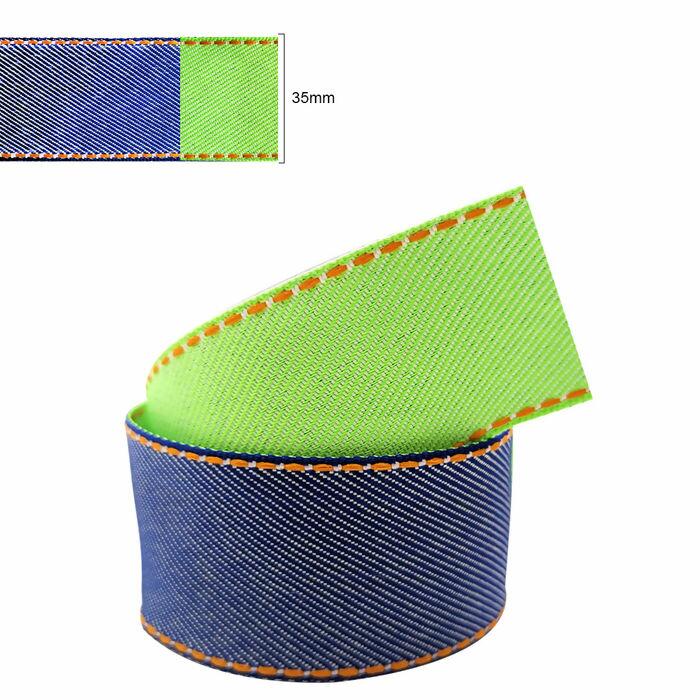 Detalhe Fita Pespontada Jeans - 35mm x 10m - Indigo/ Verde Neon 091 - 950M/35