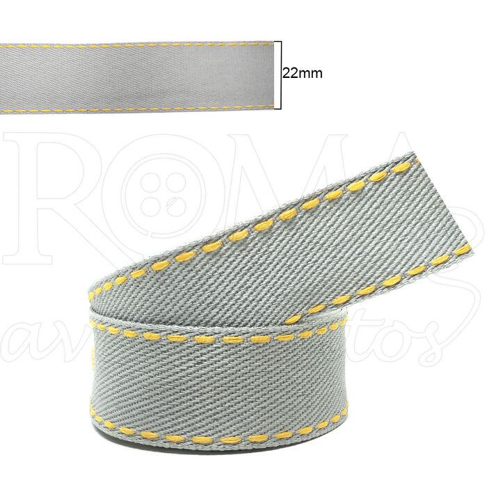 Descrição Fita pespontada jeans - Sinimbu - 22mm x 10m - Cinza/Laranja - 1785