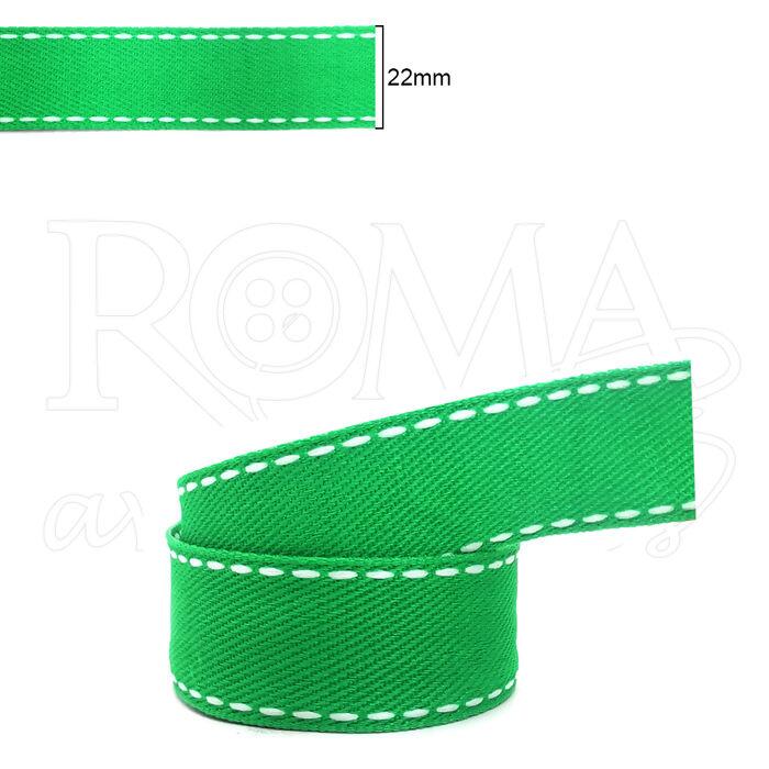 Fita pespontada jeans - Sinimbu - 22mm x 10m - Verde 04/Branco - 068950