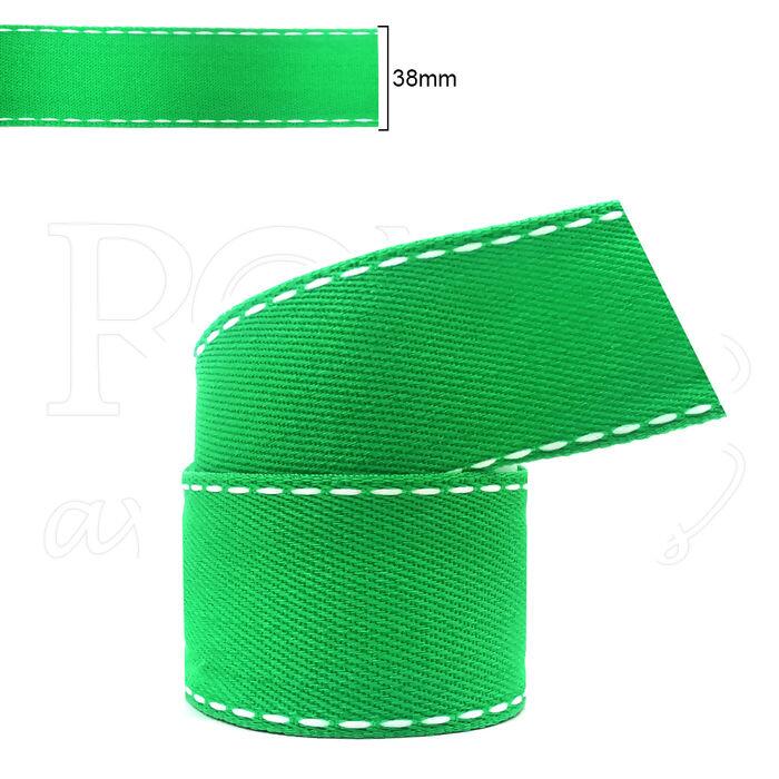 Fita pespontada jeans - Sinimbu - 38mm x 10m - Verde 04/Branco - 068946