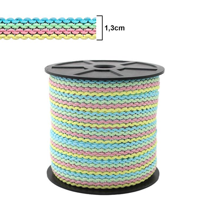 Feita em material sintético rígido e resistente, possui 1,3 cm de largura e vem em rolo com 50 metros, ideal para produções em grande escala de artesanato, moda e decoração.