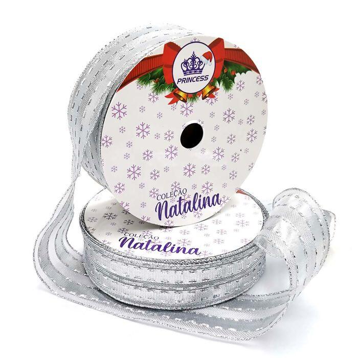 Detalhe Fita Trabalhada Natal Princess - Prata - 9m - RO.152435