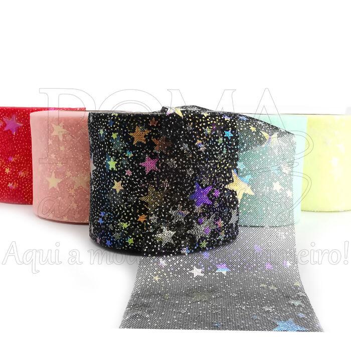 Aqui na Roma Aviamentos você encontra fita tule estrelinhas ideal para laços, artesanatos, perfeita para embalar presentes, e decorar. Possuindo estrelas estampadas, e um material super macio dando um ótimo acabamento em suas criações.