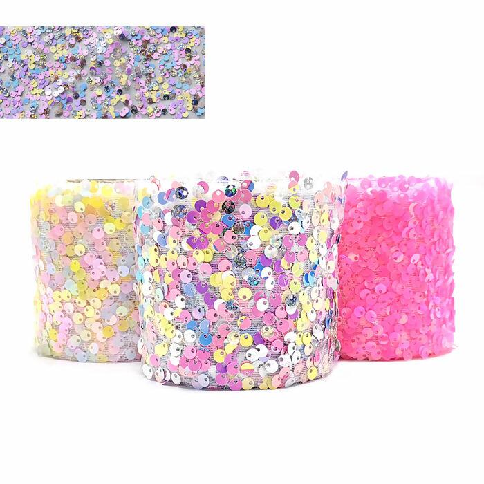 Aqui na Roma Aviamentos você encontra Fita Tule com Paetê.