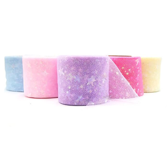 Fita tule estrela ideal para laços, artesanatos, perfeita para embalar presentes, e decorar. Possuindo estrelas estampadas e um material super macio dando um ótimo acabamento em suas criações.