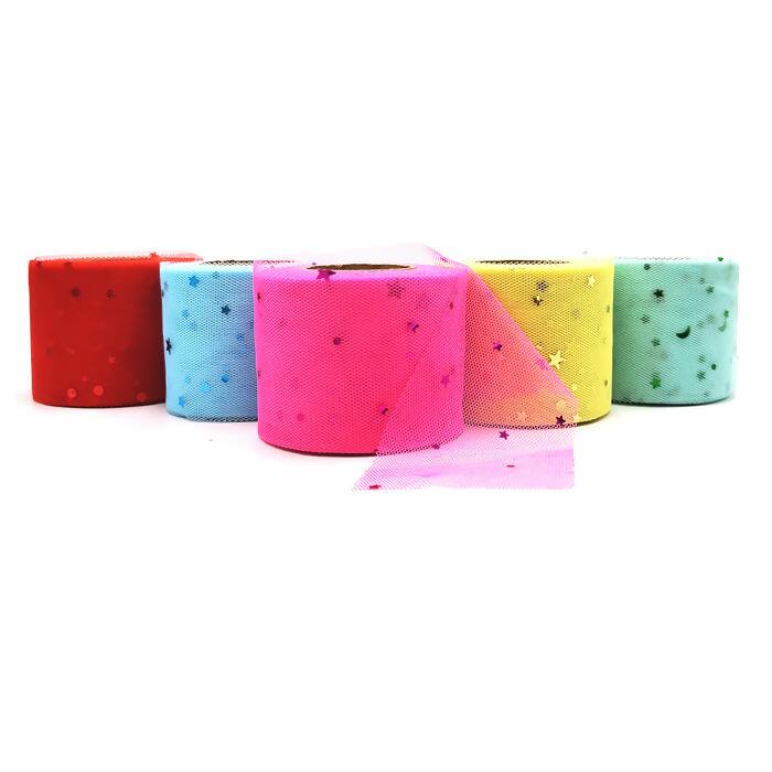 Fita tule estrelinhas ideal para laços, artesanatos, perfeita para embalar presentes, e decorar. Possuindo estrelas em confete e um material super macio dando um ótimo acabamento em suas criações.