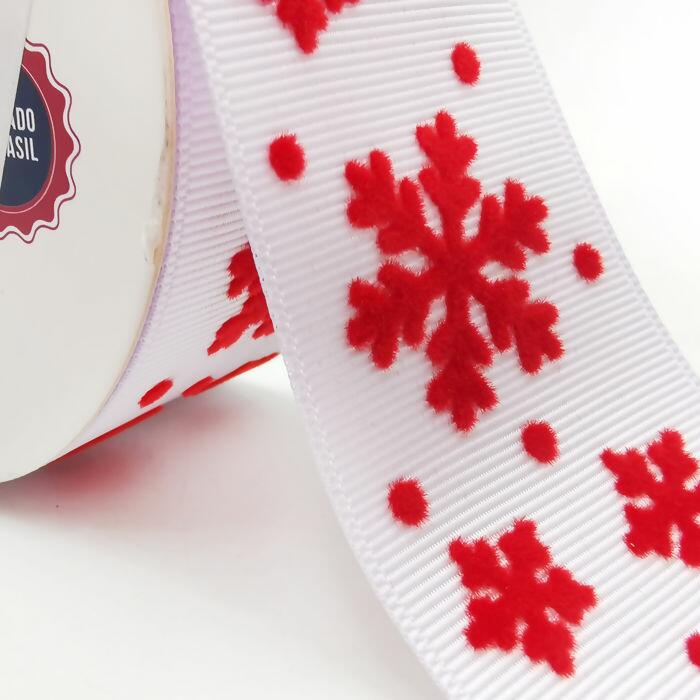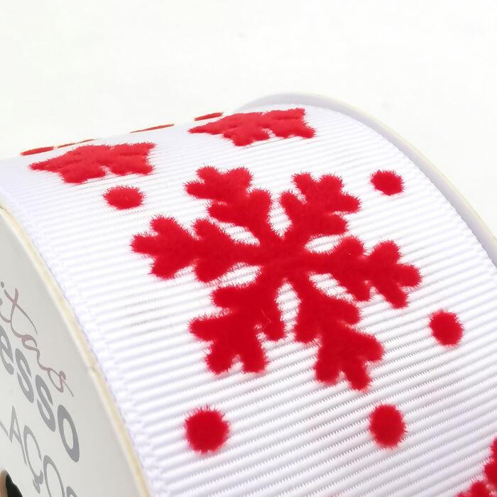 Detalhe Fita Veludo - 38mm x 10m - Flocos de Neve 018 - EGL009V