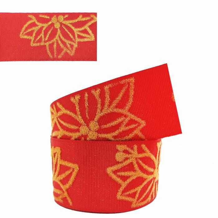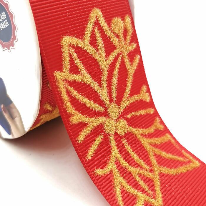 Descrição Fita Veludo - 38mm x 10m - Flor de Natal 020 - EGL009V