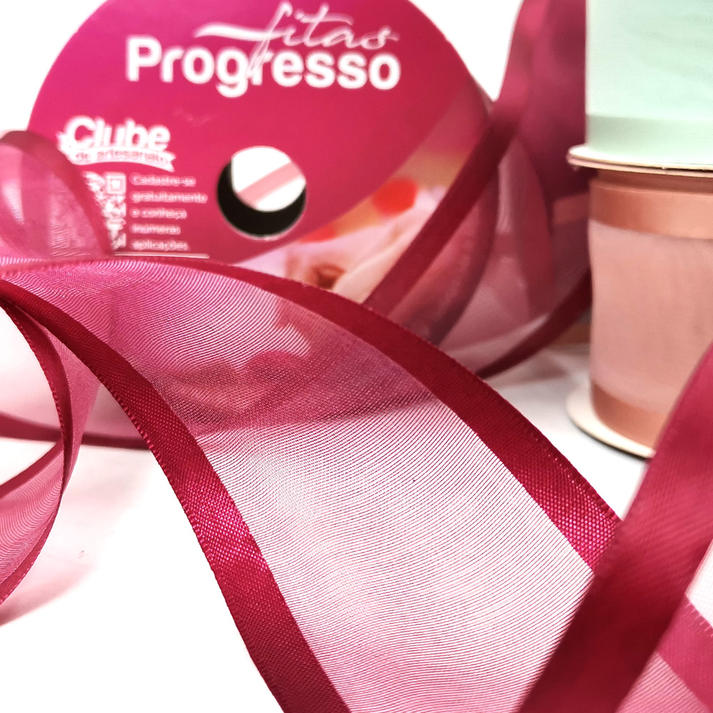 Encontre todos os tipos de fitas para confecção de laços, tiaras, presilhas, decoração de roupas e acessórios em geral. A fita com voal da Progresso, é rica em delicadez e elegância utilizada para fazer laços mais sofisticados, e com uma leve transparência. Possuem cores radiantes e uma maciez indescritível!