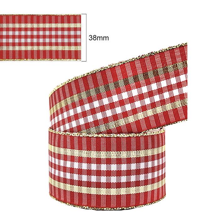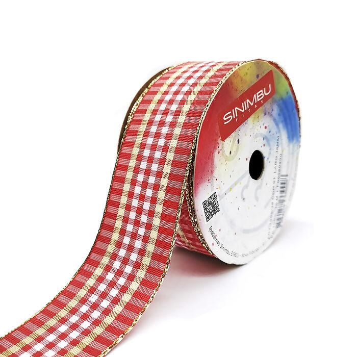 Fita Xadrez Natalina - 38mm x 10m - Vermelho/Branco C01 - 1959/38