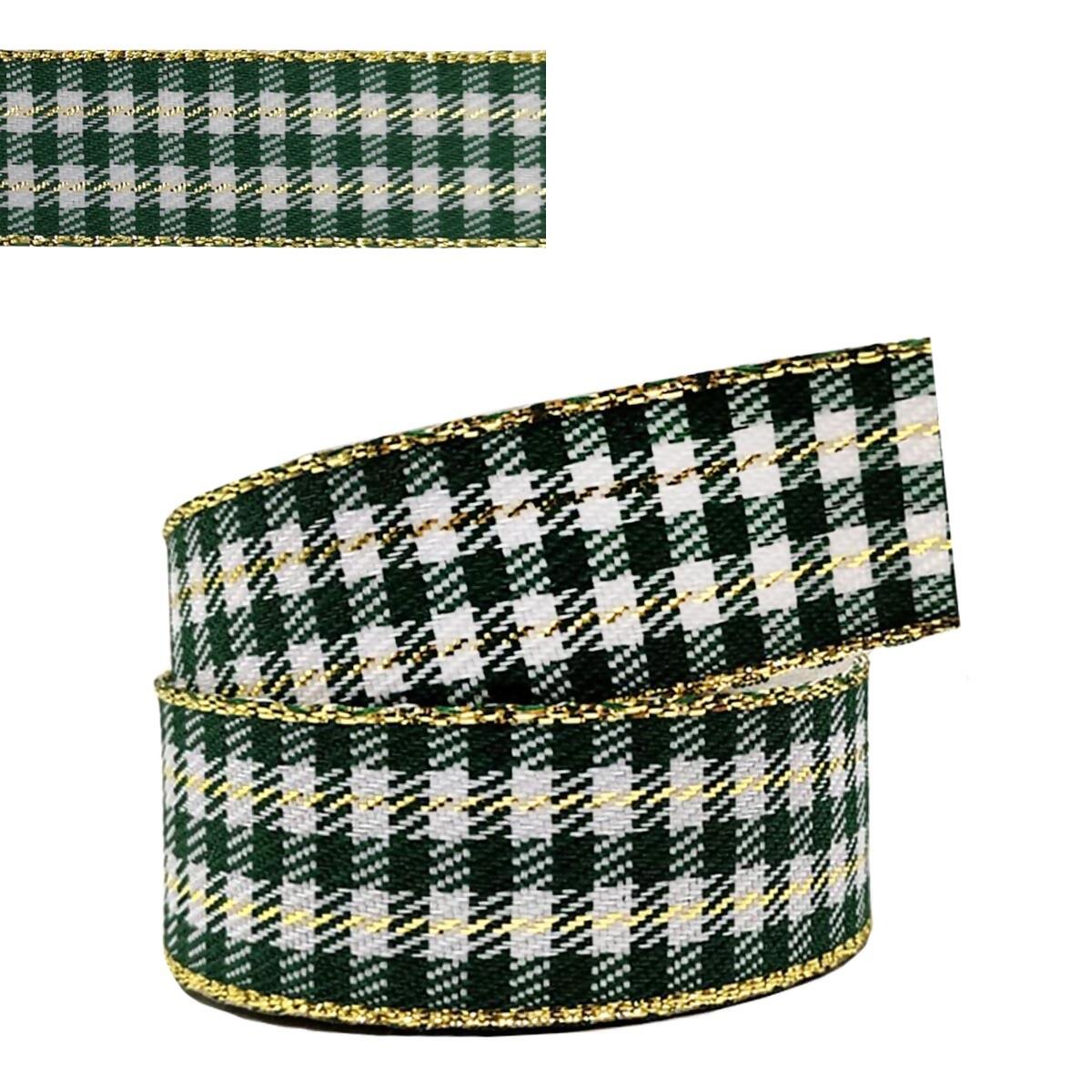 Descrição Fita Xadrez Natalina Verde com Dourado 22mm x 10m 1990/22