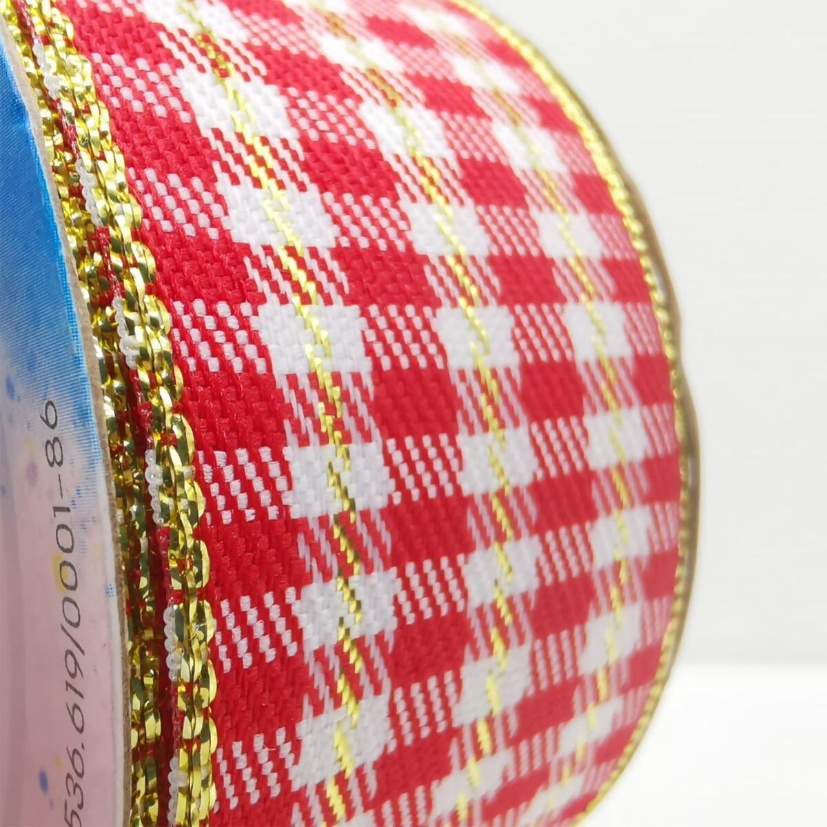 Descrição Fita Xadrez Natalina Vermelha com Dourado 10m 1990