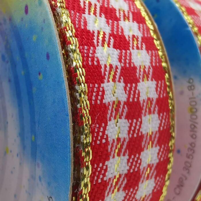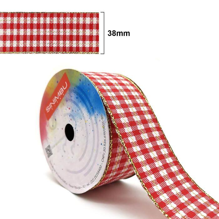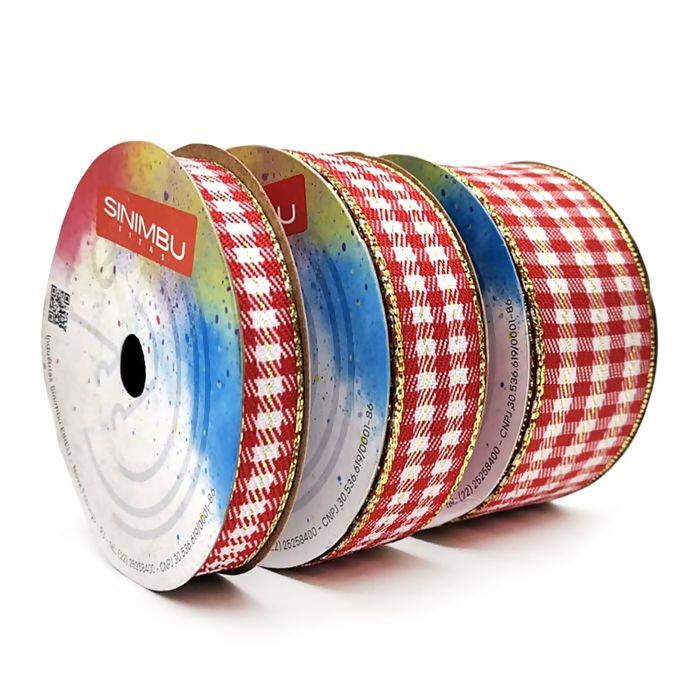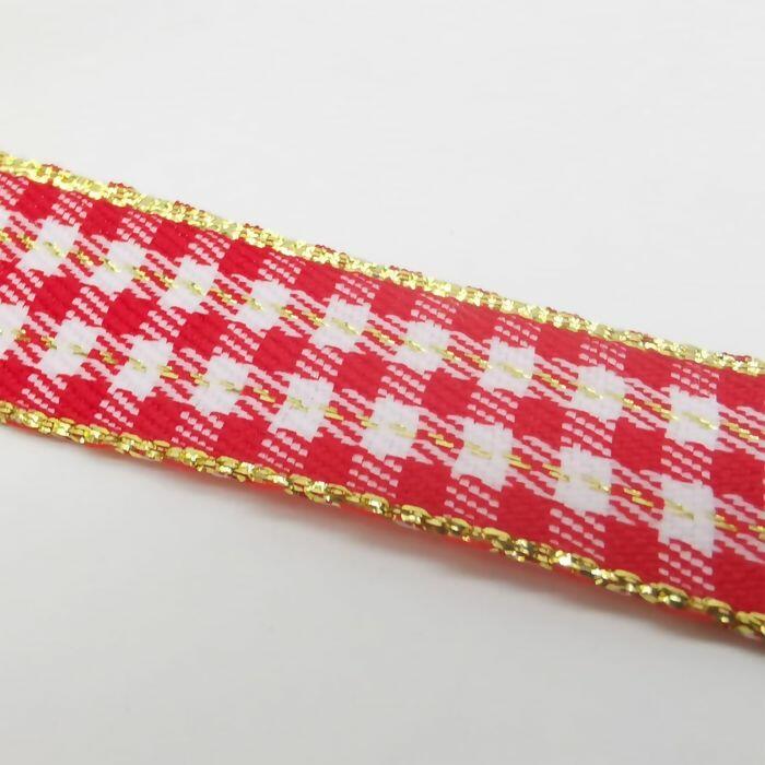 Fita Xadrez Natalina Vermelha com Dourado – Sinimbu