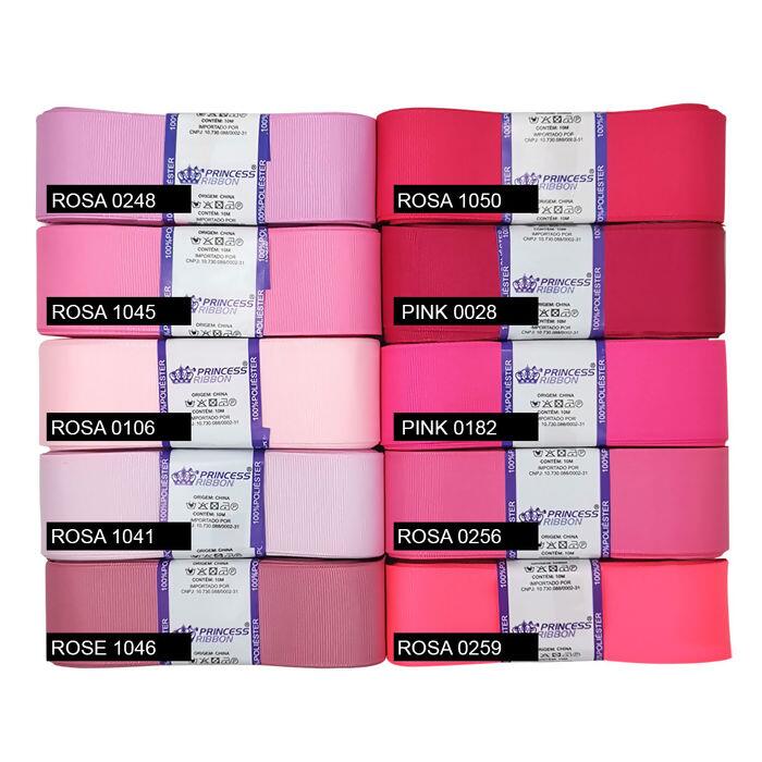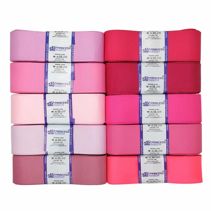 Fitas Gorgurão Princess - 10 unidades - N.9 - 38mm x 10m - Tons de Rosa - ROFR.151242