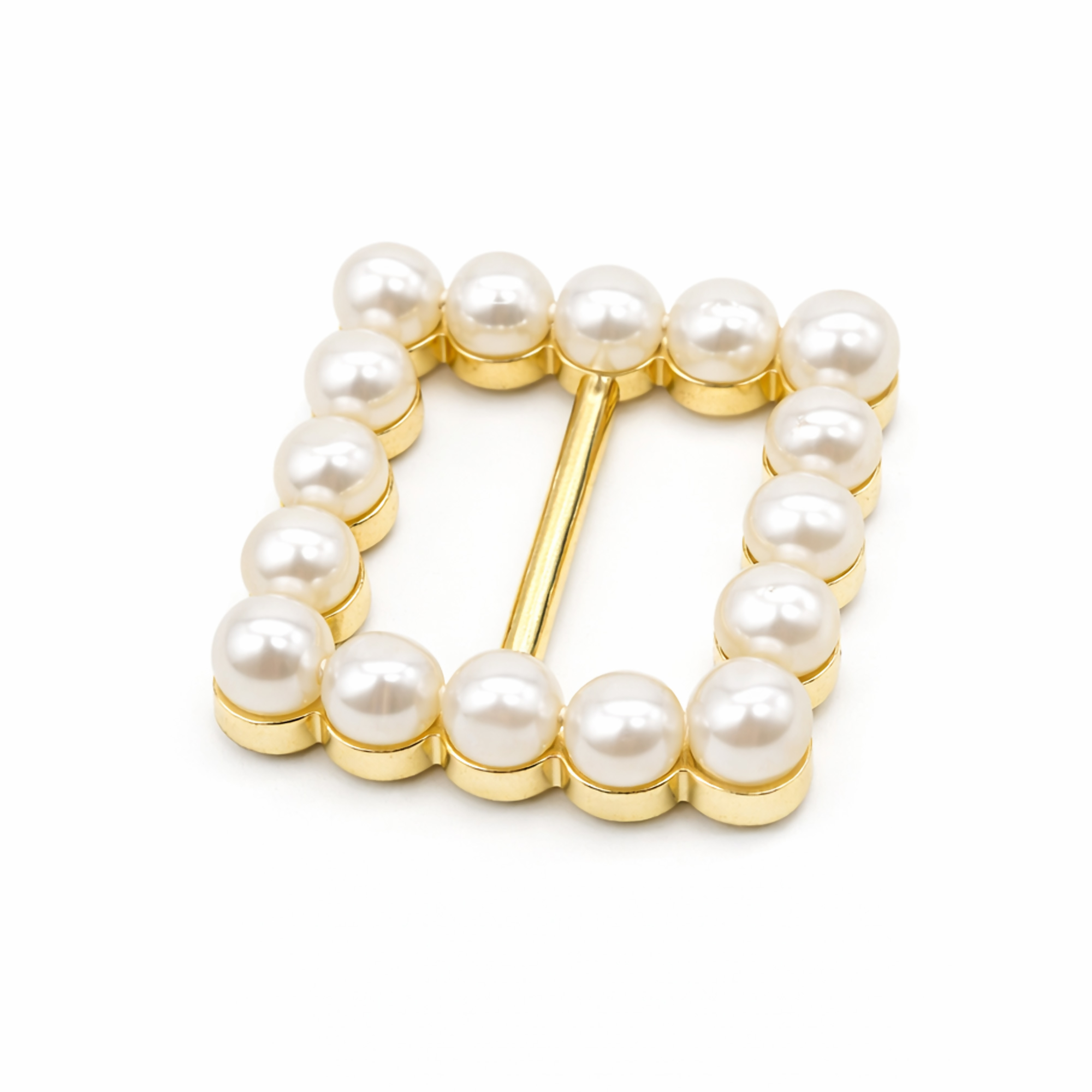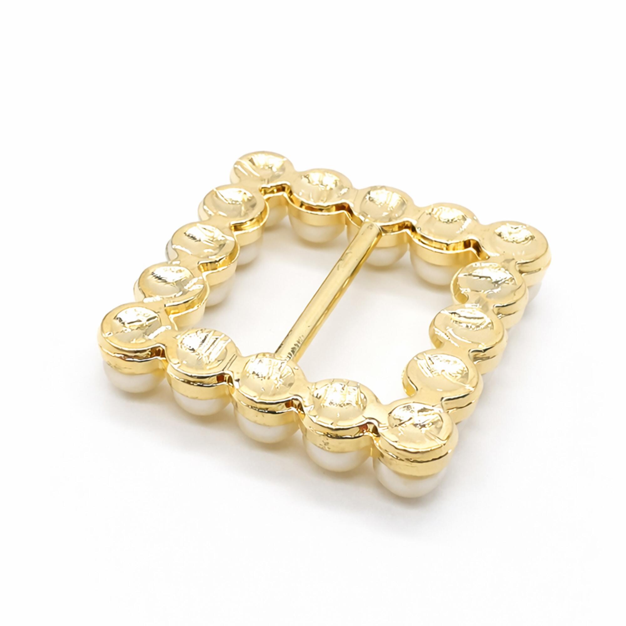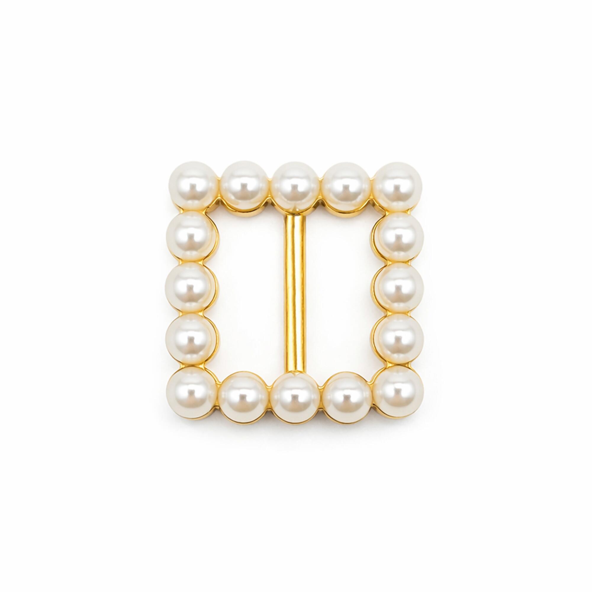 Fivela Quadrada com Pérola 20mm Dourado/Branco 50 unidades RO.155067