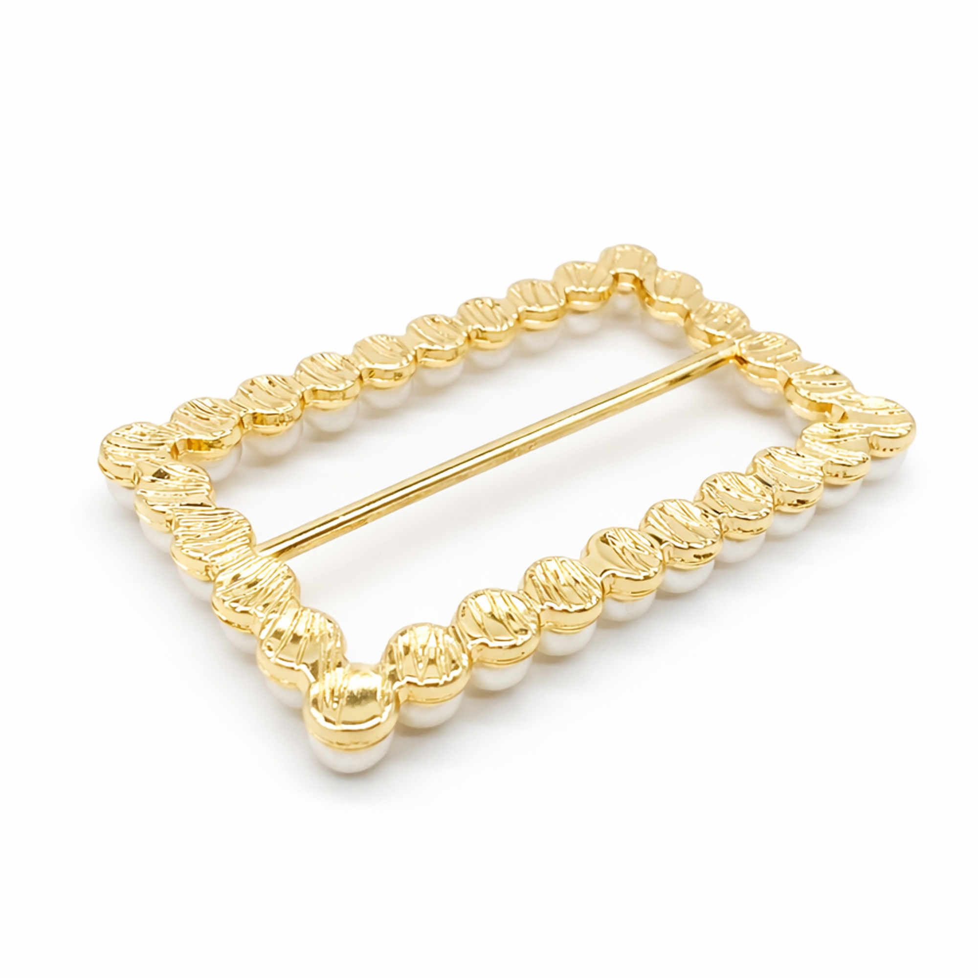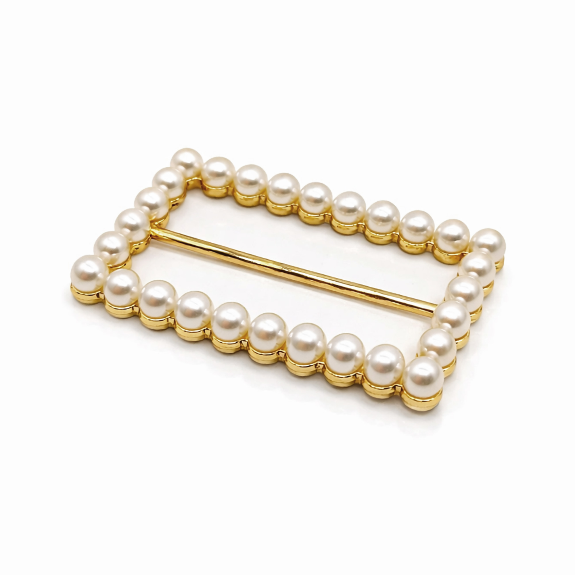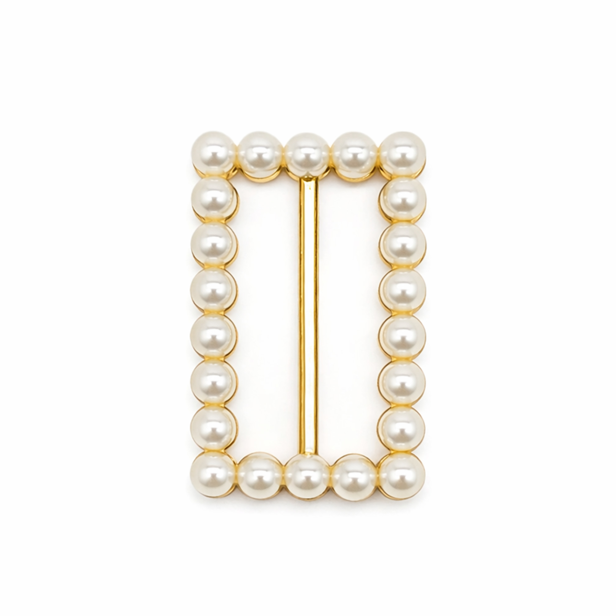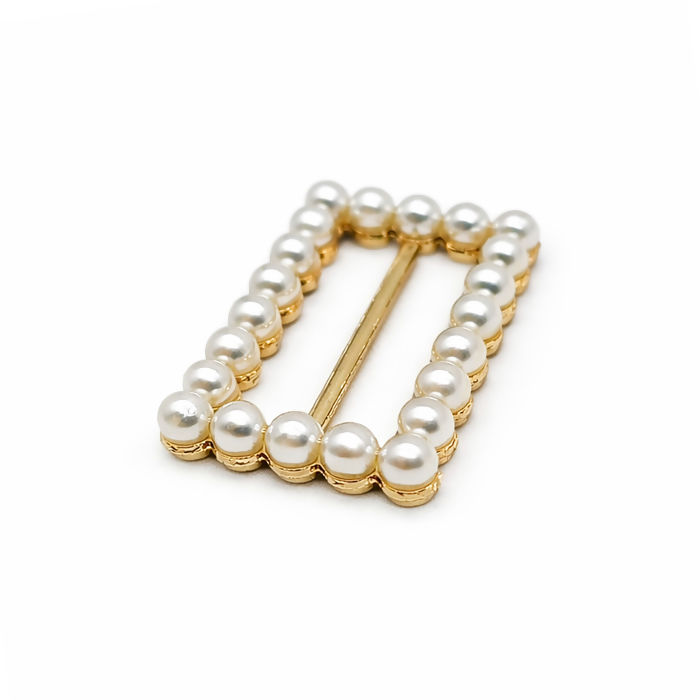 Fivela Retangular com Pérola Dourado/Branco 20 unidades RO.155064