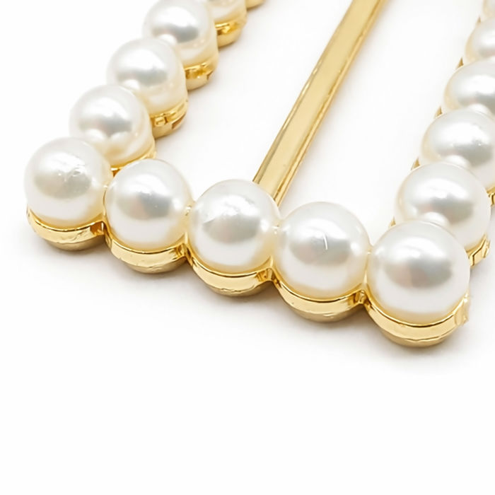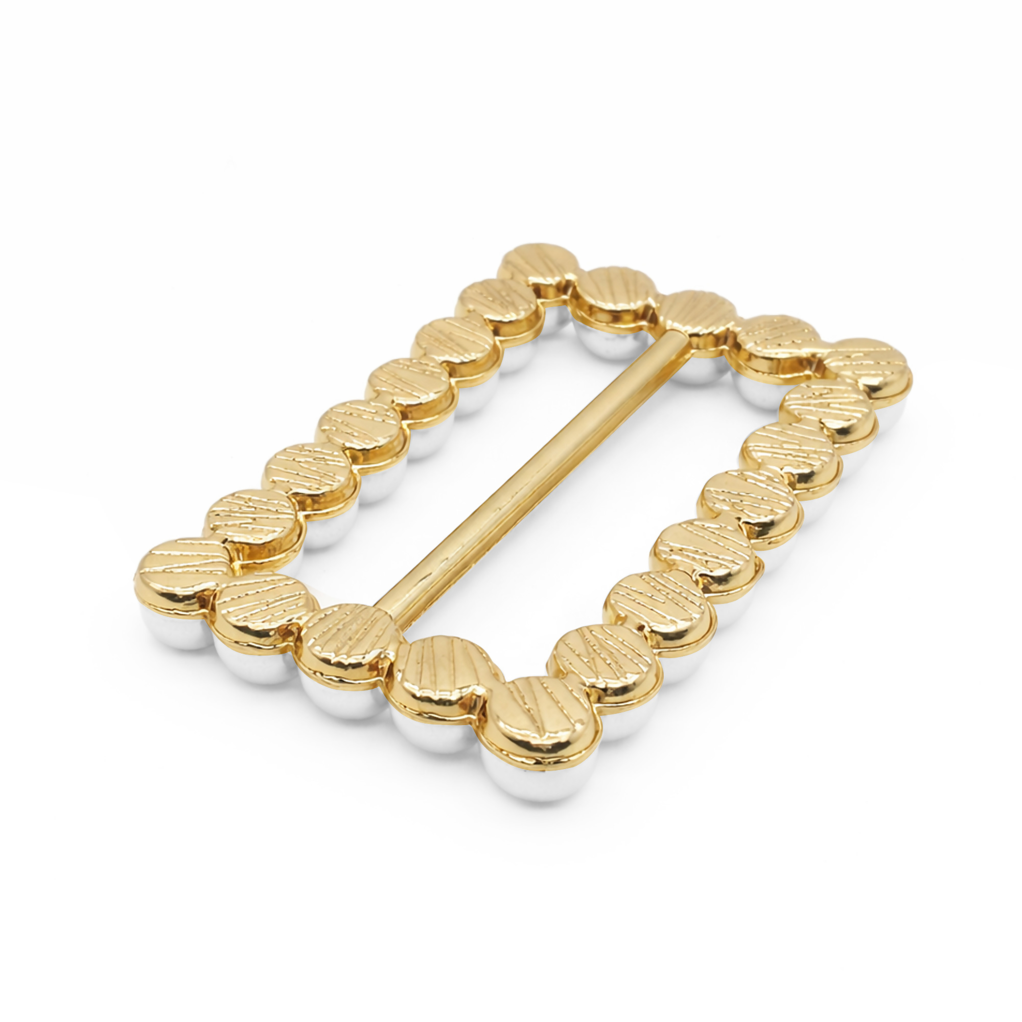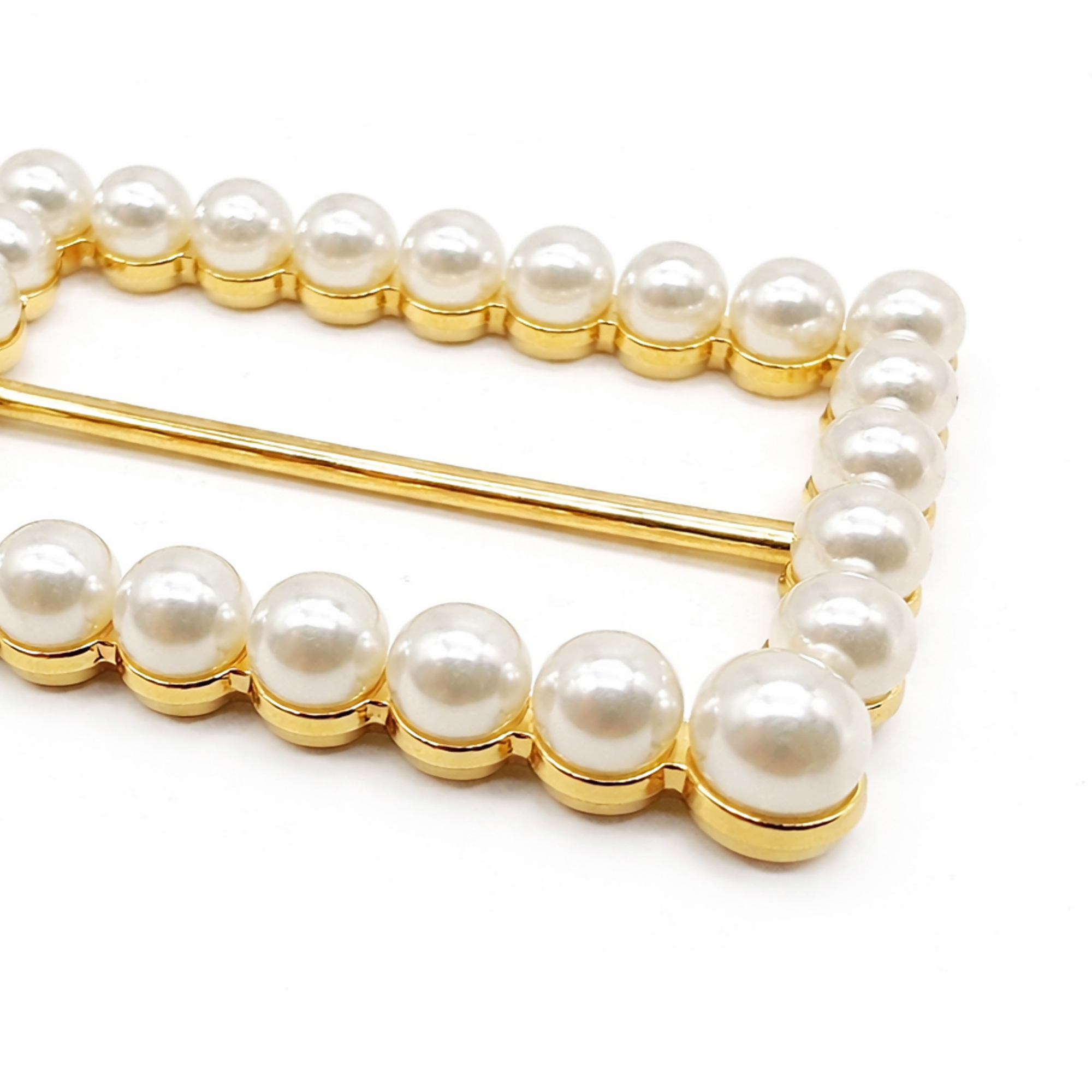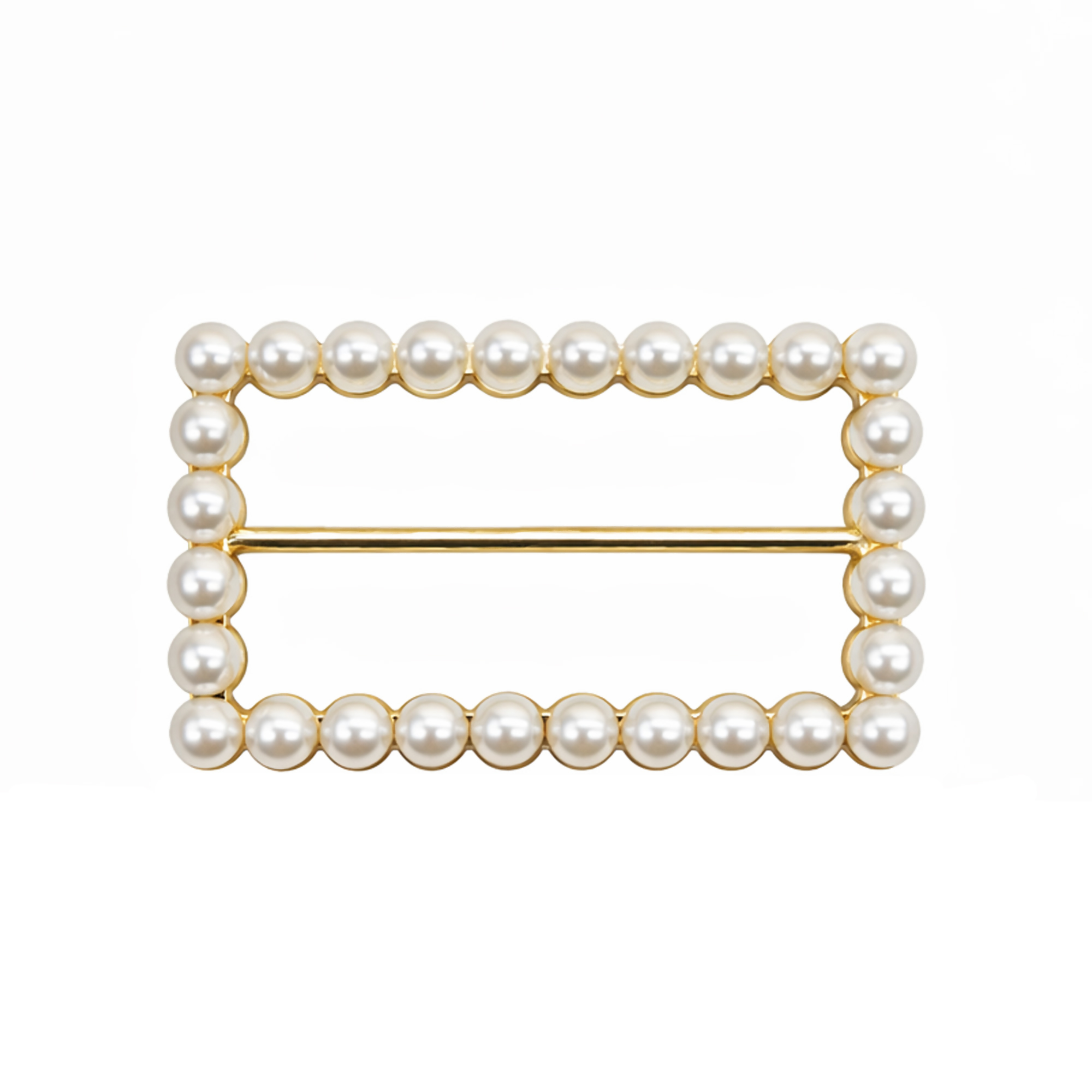 Fivela Retangular com Pérola Dourado/Branco 20 unidades RO.155064