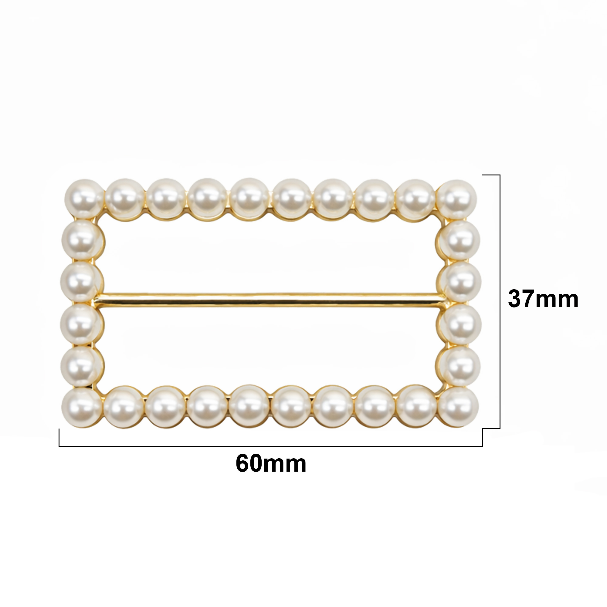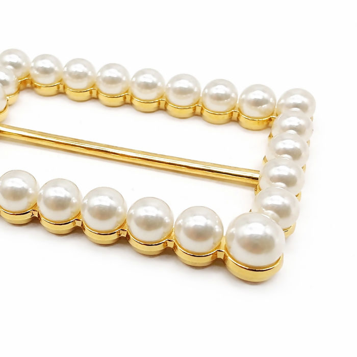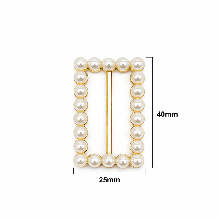 Fivela Retangular com Pérola Dourada 40x25mm / 60x37mm